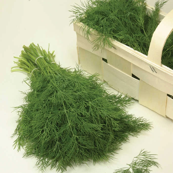 Our longest lasting dill. This variety imported from Germany has an upright growth habit and a very dense leaf mass. The dark blue-green, ferny foliage is highly aromatic and flavorful. Very late to bolt. Ornamental yellow flowers are also pretty fillers in bouquets.